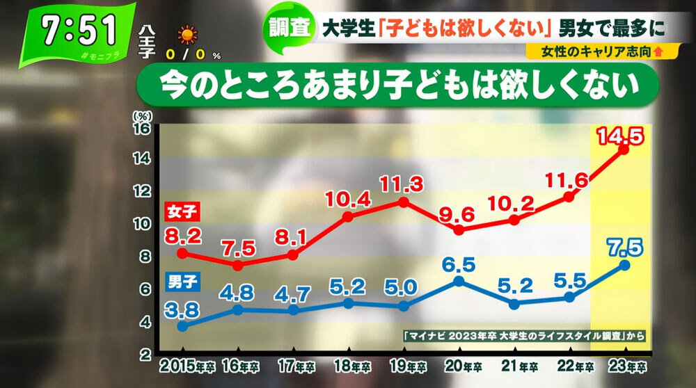 「子どもがほしくない人が半数超えているという数字は驚きですね。個人の選択には踏み込まないけれど、子どもがいるということは人生にとって大きな喜びや成長の機会でもあると思うので、私にとっては想像できないです」