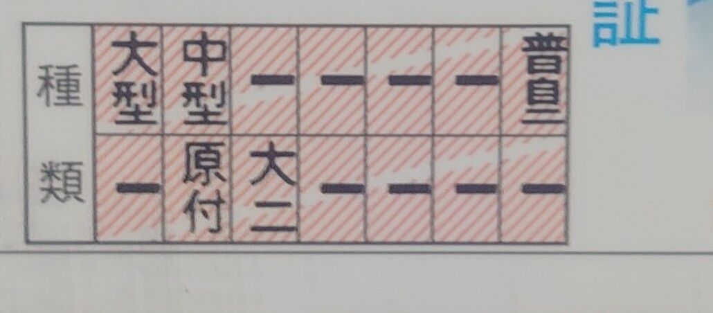 この免許を持っているやつが限定解除しようとして深視力検査で落ちると今の使えない普通免許に落とされるから要注意