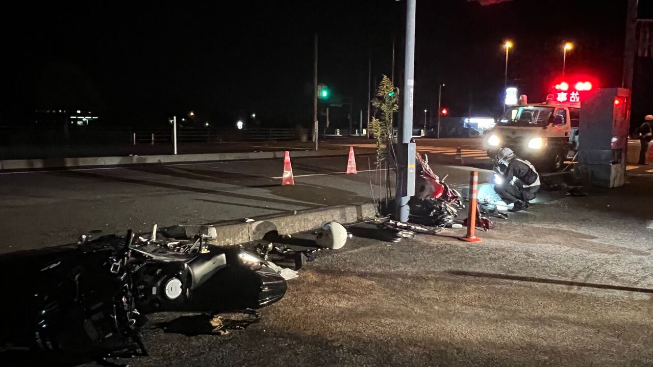 バイク同士が交差点で衝突。右直事故により2台とも大破し、双方の運転手が死亡。死亡したのは大学生(26)と会社員(40)